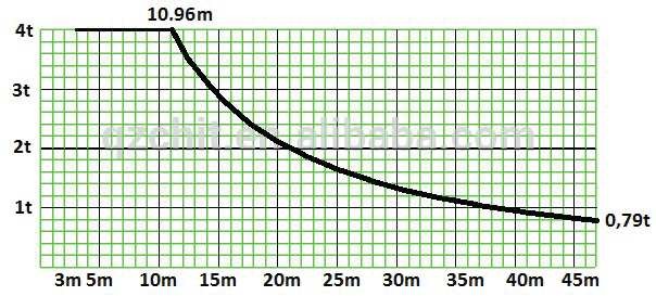 Maksymalna masa podnoszonego ładunku przy kącie β wynoszącym 55° nie może przekraczać: