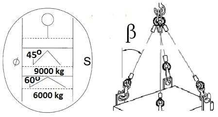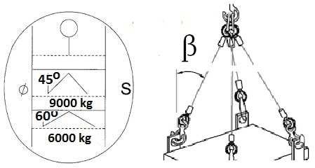 - dopuszczalne obciążenie robocze pozostaje bez zmian, ponieważ kąt wpływa tylko na udźwig dźwignicy