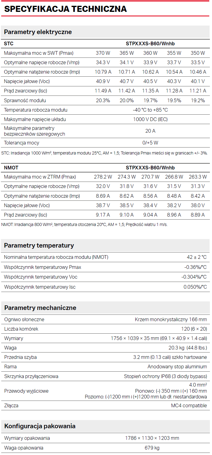 • Doskonała wydajność modułów osiągana dzięki najwyższemu reżimowi produkcji i technologii
