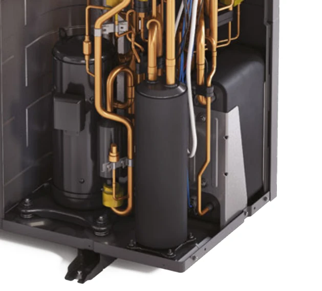 Dzięki technologii Flash Injection urządzenie utrzymuje wysoką wydajność nawet przy niskich temperaturach, a zastosowany radiator efektywnie odprowadza ciepło z obwodu inwertera, poszerzając zakres pracy systemu.